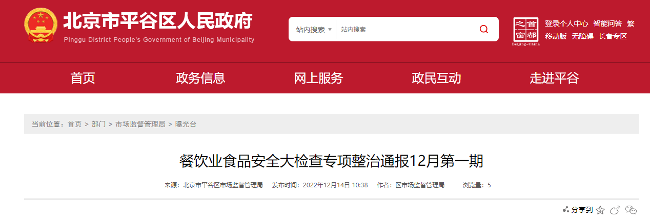 中國質量新聞網訊 12月14日,北京市平谷區(qū)市場監(jiān)管局通報餐飲業(yè)食品安全大檢查專項整治情況(12月第一期)。