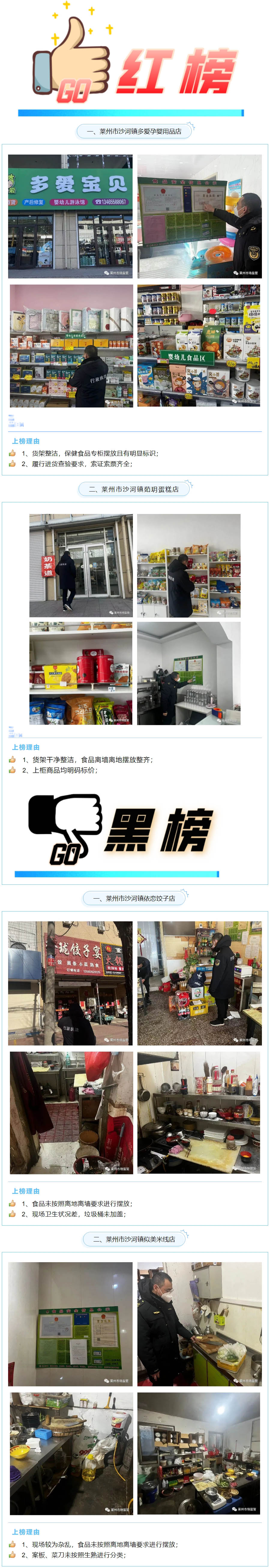 為進一步規(guī)范市場主體經(jīng)營行為,保障人民群眾飲食用藥安全,山東省萊州市市場監(jiān)管局建立“食品藥品安全紅黑榜”,選取部分正、反兩方面典型,給予紅黑榜公示曝光。本期公示紅榜業(yè)戶2戶、黑榜業(yè)戶2戶。