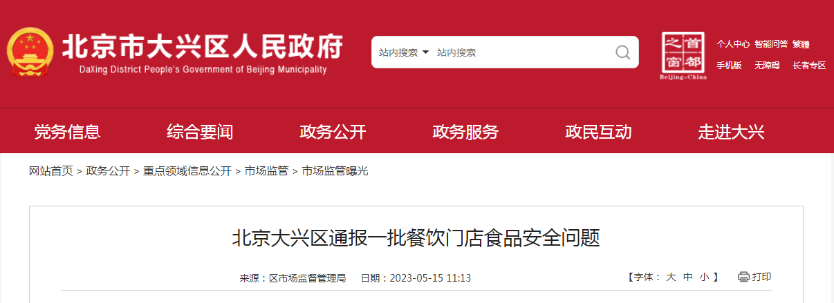 北京大興區(qū)通報一批餐飲門店食品安全問題