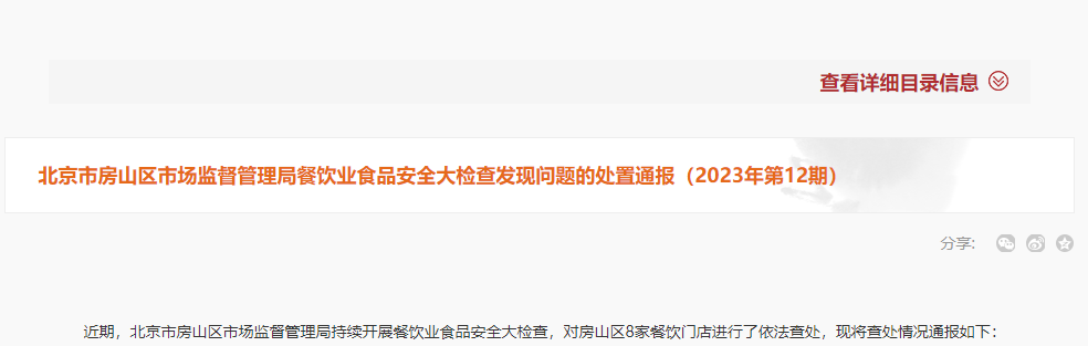 北京市房山區(qū)市場(chǎng)監(jiān)督管理局餐飲業(yè)食品安全大檢查發(fā)現(xiàn)問題的處置通報(bào)(2023年第12期)
