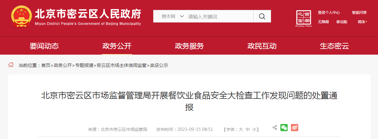北京市密云區(qū)市場(chǎng)監(jiān)督管理局開展餐飲業(yè)食品安全大檢查工作發(fā)現(xiàn)問題的處置通報(bào)