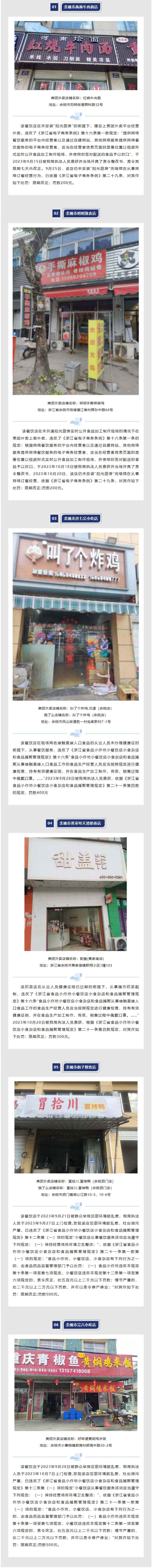 近幾月,浙江省余姚市市場監(jiān)管局公布了多批違反《中華人民共和國食品安全法》《浙江省食品小作坊小餐飲店小食雜店和食品攤販管理規(guī)定》《浙江省電子商務(wù)條例》的典型案例,但是這個月仍有網(wǎng)絡(luò)訂餐單位出現(xiàn)未安裝陽光廚房、從業(yè)人員未持有有效健康證明、經(jīng)營場所環(huán)境衛(wèi)生不整潔等情況,本月再次曝光,希望廣大網(wǎng)絡(luò)訂餐單位規(guī)范經(jīng)營。