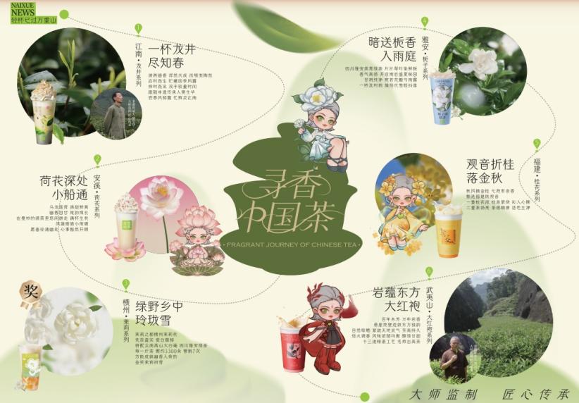 奈雪“尋香中國茶”系列正是以中國傳統(tǒng)好茶為根基,尋覓五湖四海的名優(yōu)茶底,按產(chǎn)地、香氣、口感等信息徐徐鋪展,勾勒出一幅恢弘的奈雪“好茶地圖”。今年,該系列已推出6期,分別是“江南·龍井系列”“安溪·荷花系列”“橫州·茉莉系列”“雅安·梔子系列”“福建·桂花系列”“武夷山·大紅袍系列”。此外,奈雪多次攜手非遺傳承人推廣傳統(tǒng)茶文化,除劉安興大師外,奈雪還邀請“西湖龍井非遺傳承人”樊生華大師監(jiān)制龍井春茶。高品質(zhì)中國茶飲體驗(yàn)和低至9.9元的質(zhì)價(jià)比優(yōu)勢,讓“尋香中國茶”系列實(shí)現(xiàn)銷量、口碑雙豐收。僅中秋國慶期間,該系列茶飲銷量突破300萬杯,在社交平臺(tái)上也涌現(xiàn)出大量安利帖。
