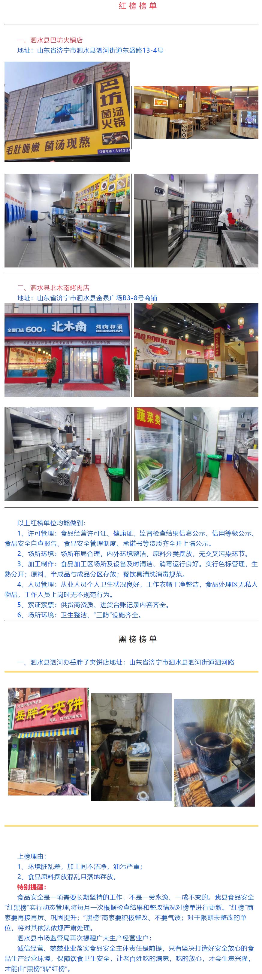 山東省泗水縣市場(chǎng)監(jiān)督管理局結(jié)合國(guó)家食品安全示范城市創(chuàng)建及食品安全“兩個(gè)責(zé)任”落實(shí)工作,在全縣范圍內(nèi)持續(xù)推行食品安全“紅黑榜”評(píng)選活動(dòng),督促食品生產(chǎn)經(jīng)營(yíng)者落實(shí)主體責(zé)任,強(qiáng)化守信激勵(lì)和失信懲戒力度,推動(dòng)食品安全社會(huì)共治。