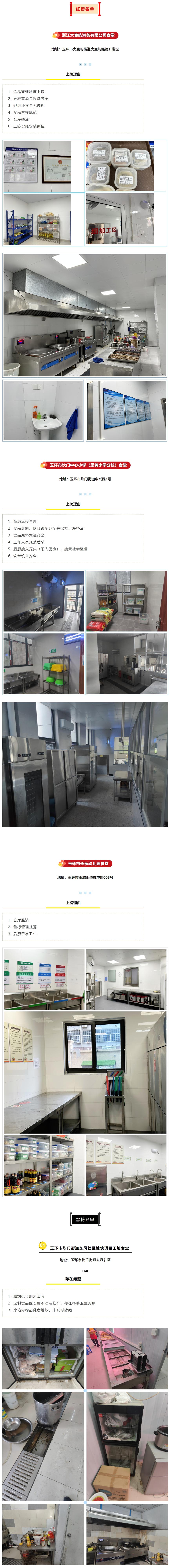 為進(jìn)一步規(guī)范集中用餐單位的食品安全服務(wù)水平,保護(hù)全市重點人群的飲食健康,浙江省玉環(huán)市市場監(jiān)督管理局開展集中用餐專項治理行動,強(qiáng)化重點行業(yè)、重點群體的食品安全管理。現(xiàn)對其中四家集中用餐單位食堂進(jìn)行公示:?