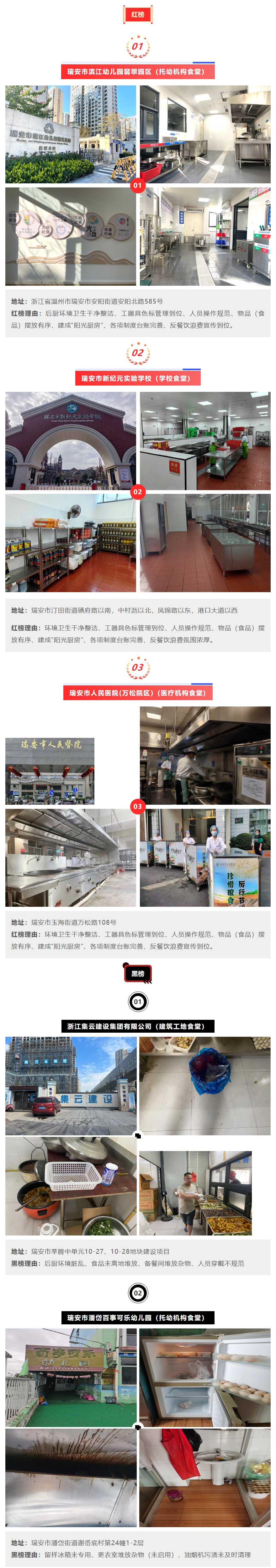 11月份以來,浙江省瑞安市市場監(jiān)督管理局持續(xù)開展集中用餐單位專項整治,切實保障集聚用餐食品安全。為進一步督促各單位食堂落實主體責任,根據最近檢查結果,現將第二期集中用餐單位紅榜和黑榜名單公布如下: