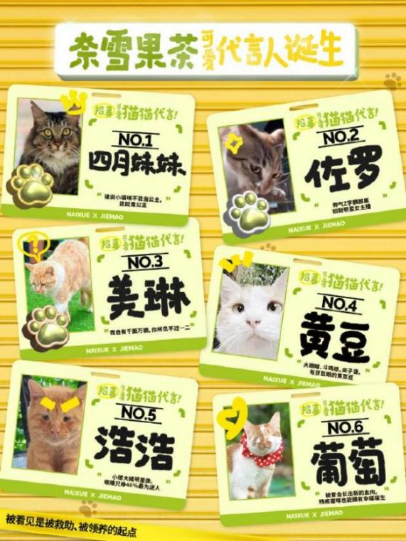 近日,奈雪的茶攜手街貓共同發(fā)起“救助流浪貓”愛心公益活動,招募并票選出6只流浪貓成為產(chǎn)品代言喵,登上奈雪果茶瓶身,其所在的貓屋將被免費投喂60天,132只流浪貓絕育后開放領(lǐng)養(yǎng),幫助更多流浪貓找到溫暖的家,傳遞愛心與溫暖。