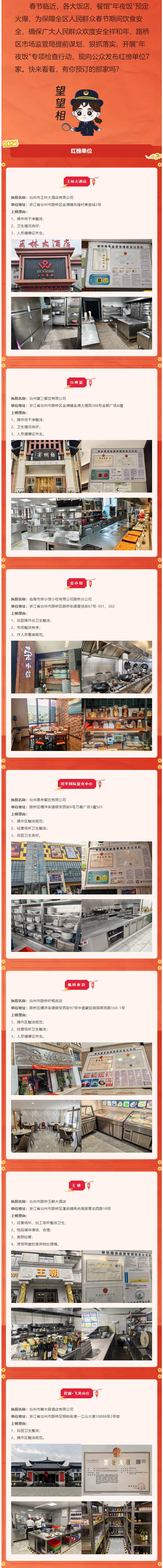 食品安全放心行動丨浙江省臺州市路橋區(qū)餐飲單位紅黑榜(2025年第2期)——“年夜飯”紅榜專欄