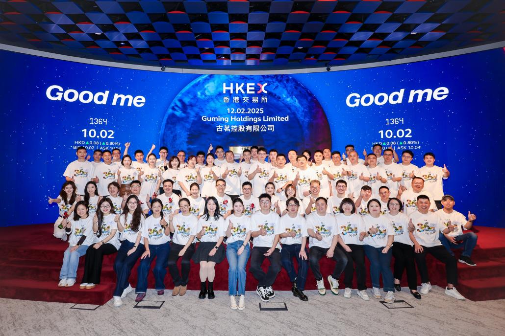 古茗團(tuán)隊(duì)與加盟商代表在港交所上市儀式現(xiàn)場(chǎng)