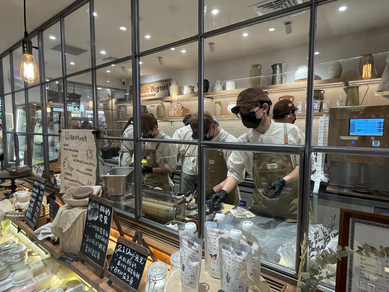茉酸奶2.0牧場奶倉店現(xiàn)場制作區(qū)