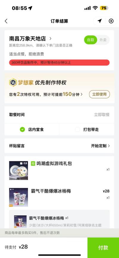 一場打破次元壁的夢幻聯(lián)動(dòng)正點(diǎn)燃年輕群體的熱情。4月28日,奈雪的茶攜手備受矚目的二次元游戲《鳴潮》,開啟一場燃動(dòng)人心的跨界聯(lián)名?!捌凑摺保ā而Q潮》玩家)們以茶為號,早上8點(diǎn)多就聚集在奈雪門店,只待開門就進(jìn)店搶購。多地奈雪門店大排長龍,奈雪點(diǎn)單小程序顯示多家門店出現(xiàn)超級爆單,開始營業(yè)5分鐘內(nèi)涌入兩三百個(gè)訂單,線上線下反響熱烈。