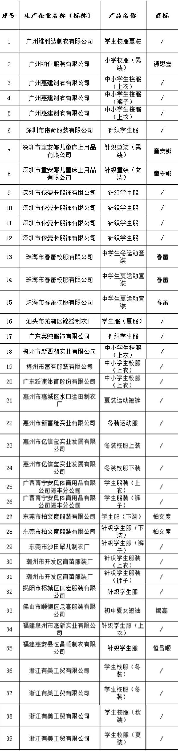 據(jù)了解,省質監(jiān)局已聯(lián)合教育部門約談本次抽查不合格企業(yè),責令企業(yè)查找不合格原因、停止銷售及主動收回不合格校服,積極整改,提高產(chǎn)品質量;二是對本次中小學生校服等4種產(chǎn)品共抽查中發(fā)現(xiàn)存在嚴重不合格質量問題的11家企業(yè)依法移送查處。