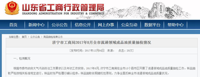 中國質(zhì)量新聞網(wǎng)訊 12月4日,山東省工商局官網(wǎng)發(fā)布濟寧市工商局2017年8月全市流通領(lǐng)域成品油質(zhì)量抽檢情況稱,根據(jù)市委市政府大氣污染防治工作要求以及年初工作安排,2017年8月,濟寧市工商局在全市13個縣市區(qū)開展了流通領(lǐng)域成品油質(zhì)量抽檢工作。樣品抽取嚴(yán)格按相關(guān)標(biāo)準(zhǔn)規(guī)定進(jìn)行,樣品封存嚴(yán)格履行確認(rèn)程序。樣品抽取依照隨機性原則,力爭全面反映全市流通領(lǐng)域成品油質(zhì)量狀況。