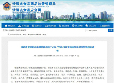 中國質(zhì)量新聞網(wǎng)訊 2018年1月12日,清遠(yuǎn)市食藥監(jiān)局官網(wǎng)發(fā)布通告稱,根據(jù)清遠(yuǎn)市2017年食品安全抽檢計(jì)劃,清遠(yuǎn)市食品藥品監(jiān)督管理局近期組織對(duì)全市范圍內(nèi)生產(chǎn)經(jīng)營的20大類食品進(jìn)行監(jiān)督抽檢工作,具體包括糧食加工品、食用植物油、調(diào)味品、飲料、蔬菜制品、炒貨食品及堅(jiān)果制品、肉制品、乳制品、冷凍飲品、茶葉、薯類和膨化食品、酒類、水果制品、食糖、淀粉及淀粉制品、糕點(diǎn)、豆制品、蜂產(chǎn)品、特殊膳食食品、餐飲食品共419批次樣品,抽樣檢驗(yàn)項(xiàng)目合格樣品414批次,不合格樣品5批次。根據(jù)食品安全國家標(biāo)準(zhǔn),個(gè)別項(xiàng)目不合格,其產(chǎn)品即判定為不合格產(chǎn)品。