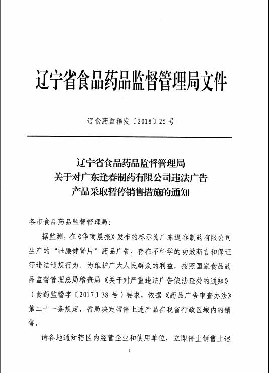 現(xiàn)將《遼寧省食品藥品監(jiān)督管理局關(guān)于對(duì)深圳市中德聽力技術(shù)有限公司違法廣告產(chǎn)品采取暫停銷售措施的通知》(遼食藥監(jiān)稽發(fā)〔2018〕24號(hào))、《遼寧省食品藥品監(jiān)督管理局關(guān)于對(duì)廣東逢春制藥有限公司違法廣告產(chǎn)品采取暫停銷售措施的通知》(遼食藥監(jiān)稽發(fā)〔2018〕25號(hào))轉(zhuǎn)發(fā)給你們,請(qǐng)遵照?qǐng)?zhí)行。