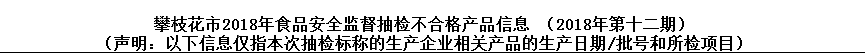 中國質(zhì)量新聞網(wǎng)訊 11月19日,攀枝花市食藥監(jiān)局官網(wǎng)發(fā)布公告稱,依據(jù)《中華人民共和國食品安全法》有關(guān)規(guī)定, 近期該局組織開展了食用農(nóng)產(chǎn)品、餐飲食品、蔬菜制品、炒貨食品及堅(jiān)果制品4個(gè)食品大類共計(jì)126批次食品安全監(jiān)督抽檢。其中抽檢合格108批次,不合格樣品18批次。
