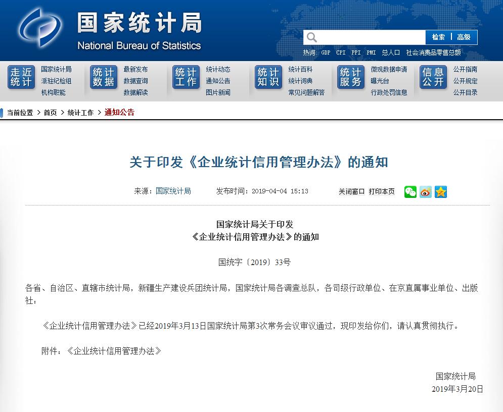 《企業(yè)統(tǒng)計(jì)信用管理辦法》已經(jīng)2019年3月13日國(guó)家統(tǒng)計(jì)局第3次常務(wù)會(huì)議審議通過(guò),現(xiàn)印發(fā)給你們,請(qǐng)認(rèn)真貫徹執(zhí)行。