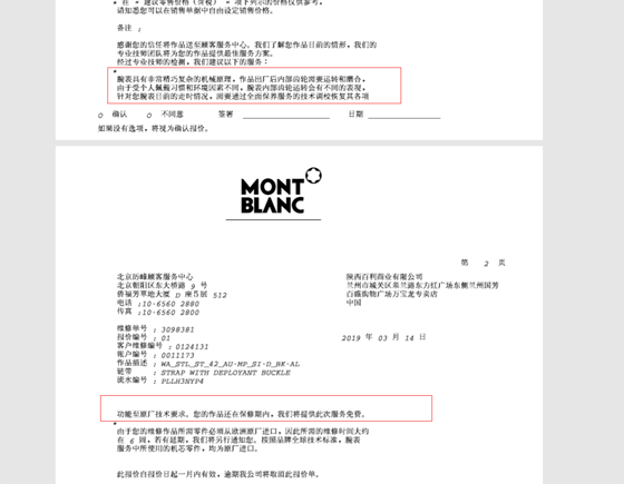 李先生對中國質(zhì)量新聞網(wǎng)表示,“2019年5月,我到店取手表時,萬寶龍出具的第二份維修報告上寫著:腕表具有非常精巧復(fù)雜的機(jī)械原理,作品出廠后內(nèi)部齒輪需要運(yùn)轉(zhuǎn)和磨合,由于受個人佩戴習(xí)慣和環(huán)境因素不同,腕表內(nèi)部齒輪運(yùn)轉(zhuǎn)會有不同的表現(xiàn),針對您腕表目前的走時情況,需要通過全面保養(yǎng)服務(wù)的技術(shù)調(diào)?;謴?fù)其各項功能至原廠技術(shù)要求?!?/p>