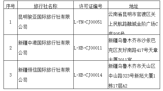 中國網(wǎng)財(cái)經(jīng)10月23日訊 據(jù)文化和旅游部網(wǎng)站消息,根據(jù)《旅行社條例》和《中國公民出國旅游管理辦法》,自2019年10月18日起,取消以下3家旅行社的經(jīng)營出境旅游業(yè)務(wù):
