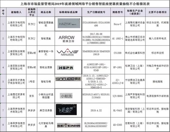 近期,市市場監(jiān)督管理局集中組織力量對京東、1號店、百聯(lián)e城、東方CJ、拼多多等5家網(wǎng)絡(luò)交易平臺銷售的29批次智能座便器進(jìn)行了市場檢查和質(zhì)量抽檢。經(jīng)檢測,有8批次不合格,不合格檢出率為27.6%,其中,京東、1號店各有1批次不合格,百聯(lián)e城、東方CJ、拼多多各有2批次不合格。不合格項目主要是標(biāo)志和說明、對觸及帶電部件的防護(hù)、輸入功率、機械強度、電源連接和外部軟線、接地措施等六項。