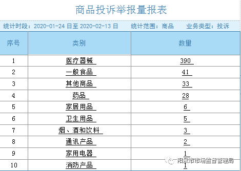 ??? 2020年春節(jié)期間全市525件商品類投訴,其中熱點主要集中的前三類投訴依次為醫(yī)療器械390件、一般食品41件、其他商品33件。詳見下圖: