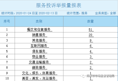 ??? 2020年春節(jié)期間全市105件服務類投訴,其中熱點主要集中的前三類投訴依次為餐飲和住宿服務51件、銷售服務20件、其它服務9件。詳見下圖: