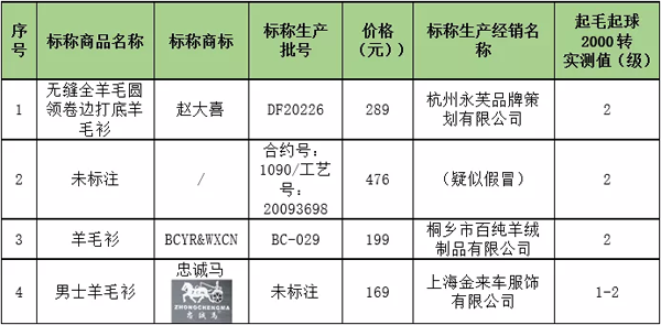 羊毛、羊絨衫比較試驗(yàn)結(jié)果通報(bào)(2020)