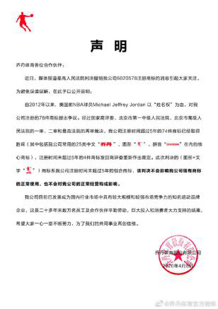 中國(guó)質(zhì)量新聞網(wǎng)訊??(龐鶴) “喬丹”商標(biāo)侵權(quán)案日前結(jié)束終審,“喬丹體育” 宣告敗訴。4月8日,喬丹體育官方微博就“商標(biāo)侵權(quán)案敗訴”發(fā)布聲明稱:該判決不會(huì)影響公司現(xiàn)有商標(biāo)的正常使用,也不會(huì)對(duì)公司的正常經(jīng)營(yíng)構(gòu)成影響。
