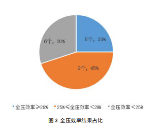 結(jié)果顯示,20組樣品的全壓效率均大于15%,全壓效率最高達(dá)39.9%,最低為20.1%,其中有5組吸油煙機(jī)的全壓效率大于等于29%,9組的全壓效率大于等于25%小于29%,評級標(biāo)準(zhǔn)及各吸油煙機(jī)評級表詳見3-6、3-7。