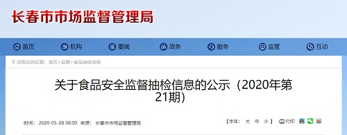 中國質(zhì)量新聞網(wǎng)訊 2020年5月28日,長春市市場監(jiān)督管理局網(wǎng)站發(fā)布關(guān)于食品安全監(jiān)督抽檢信息的公示(2020年第21期)。信息顯示,近期,長春市市場監(jiān)督管理局組織抽檢3類食品共15批次樣品,合格樣品13批次,不合格樣品2批次。