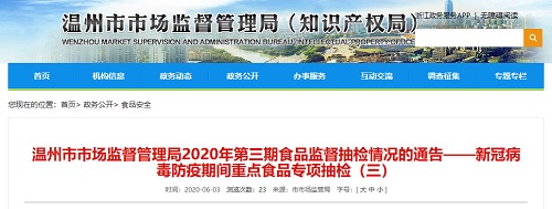 中國質(zhì)量新聞網(wǎng)訊 2020年6月3日,溫州市市場監(jiān)督管理局網(wǎng)站發(fā)布《2020年第三期食品監(jiān)督抽檢情況的通告——新冠病毒防疫期間重點食品專項抽檢(三)》。本次分別在生產(chǎn)環(huán)節(jié)和流通環(huán)節(jié)開展第三批防疫期間重點食品專項抽檢150批次,其中生產(chǎn)環(huán)節(jié)以肉制品、水產(chǎn)制品為主共抽檢50批次;流通環(huán)節(jié)抽檢校園食品40批次、食用農(nóng)產(chǎn)品60批次。經(jīng)溫州市質(zhì)量技術(shù)監(jiān)督檢測院檢測,結(jié)果合格產(chǎn)品146批次,不合格產(chǎn)品4批次,合格率為97.33%。