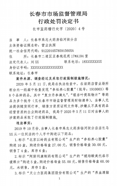 中國(guó)質(zhì)量新聞網(wǎng)訊 2020年6月3日,長(zhǎng)春市市場(chǎng)監(jiān)督管理局網(wǎng)站公開(kāi)兩起行政處罰信息。