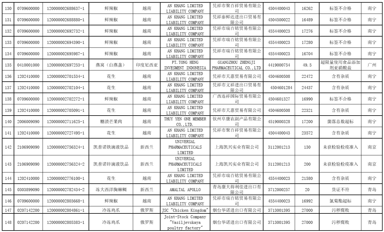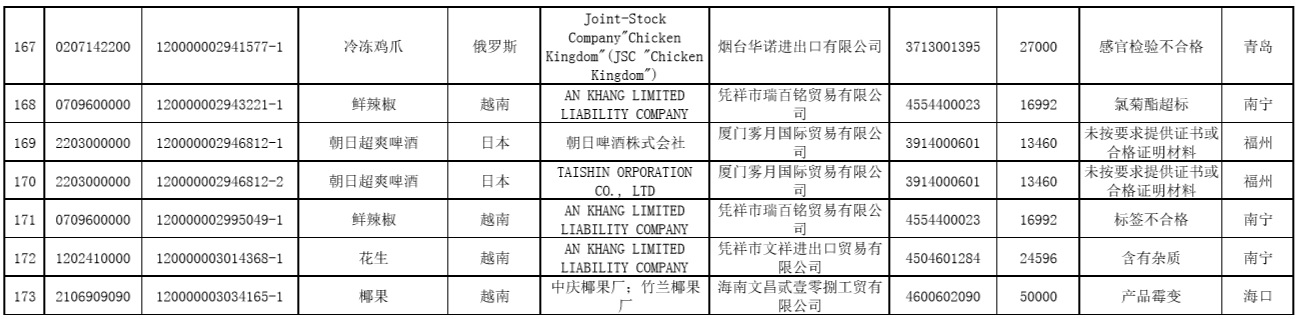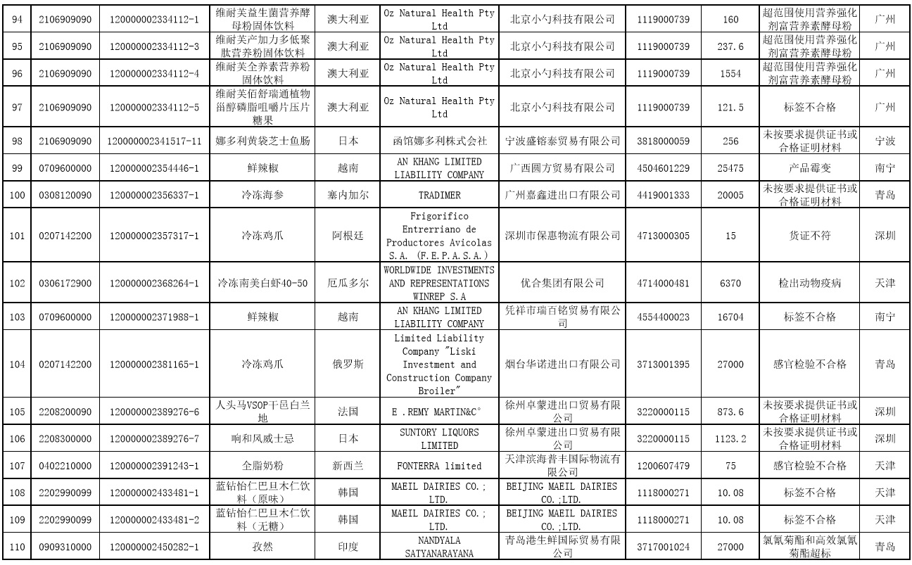 中國(guó)質(zhì)量新聞網(wǎng)訊 據(jù)海關(guān)總署網(wǎng)站2020年6月16日消息,2020年5月全國(guó)海關(guān)檢出安全衛(wèi)生項(xiàng)目不合格并未準(zhǔn)入境食品173批、化妝品1批。未準(zhǔn)入境食品化妝品均已在口岸依法做退運(yùn)或銷毀處理。