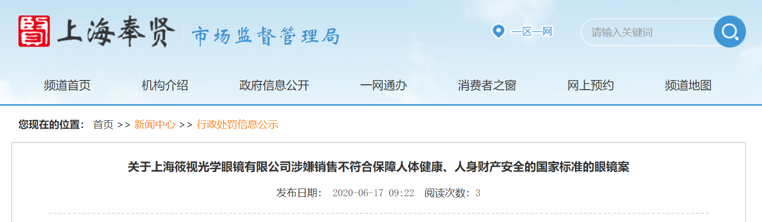 中國質(zhì)量新聞網(wǎng)訊 6月17日,上海市奉賢區(qū)市場監(jiān)督管理局官網(wǎng)發(fā)布行政處罰信息。