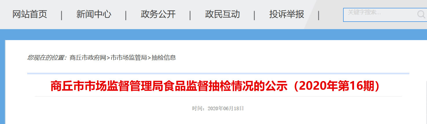中國(guó)質(zhì)量新聞網(wǎng)訊 近日,商丘市市場(chǎng)監(jiān)督管理局發(fā)布2020年第16期食品監(jiān)督抽檢情況。根據(jù)《中華人民共和國(guó)食品安全法》、《食品安全抽樣檢驗(yàn)管理辦法》的規(guī)定,商丘市市場(chǎng)監(jiān)督管理局對(duì)河南省市場(chǎng)監(jiān)督管理局下達(dá)的抽檢任務(wù)進(jìn)行了抽樣檢驗(yàn),現(xiàn)將處置完畢不合格批次公示如下: