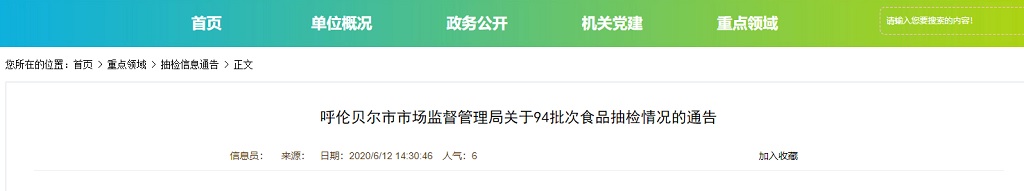 呼倫貝爾市市場監(jiān)督管理局食品抽檢不合格信息