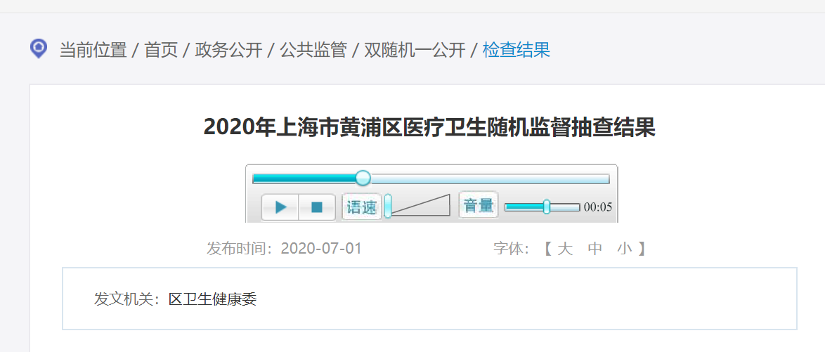 中國(guó)質(zhì)量新聞網(wǎng)訊 近日,上海市黃浦區(qū)衛(wèi)生健康委發(fā)布2020年上海市黃浦區(qū)醫(yī)療衛(wèi)生隨機(jī)監(jiān)督抽查結(jié)果。