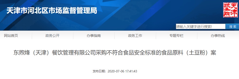 東煦烽(天津)餐飲管理有限公司采購(gòu)不符合食品安全標(biāo)準(zhǔn)的食品原料(土豆粉)案 | 東煦烽(天津)餐飲管理有限公司