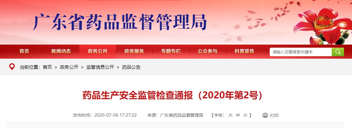 中國(guó)質(zhì)量新聞網(wǎng)訊 2020年7月6日,廣東省藥品監(jiān)督管理局網(wǎng)站發(fā)布藥品生產(chǎn)安全監(jiān)管檢查通報(bào)(2020年第2號(hào))。