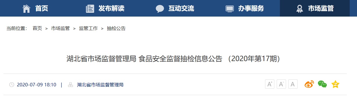 中國質(zhì)量新聞網(wǎng)訊 2020年7月9日,湖北省市場監(jiān)督管理局網(wǎng)站發(fā)布食品安全監(jiān)督抽檢信息公告 (2020年第17期)。據(jù)公告,湖北省市場監(jiān)督管理局近期組織抽檢8類食品479批次,抽樣檢驗項目合格樣品472批次,不合格樣品7批次。