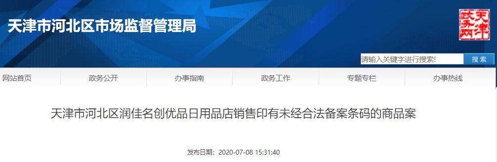 中國質(zhì)量新聞網(wǎng)訊 7月8日,天津市河北區(qū)市場監(jiān)督管理局網(wǎng)站公開天津市河北區(qū)潤佳名創(chuàng)優(yōu)品日用品店銷售印有未經(jīng)合法備案條碼的商品案行政處罰決定書。