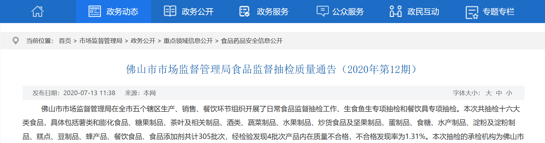 中國質(zhì)量新聞網(wǎng)訊 7月13日,廣東省佛山市市場監(jiān)督管理局官網(wǎng)發(fā)布抽檢質(zhì)量通告稱,佛山市市場監(jiān)督管理局在全市五個(gè)轄區(qū)生產(chǎn)、銷售、餐飲環(huán)節(jié)組織開展了日常食品監(jiān)督抽檢工作、生食魚生專項(xiàng)抽檢和餐飲具專項(xiàng)抽檢。