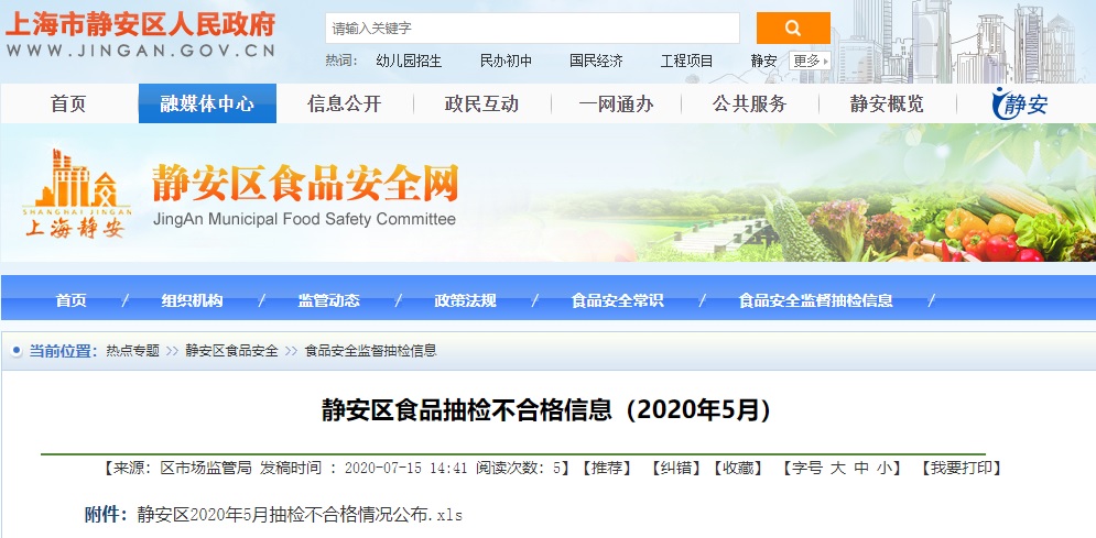 中國(guó)質(zhì)量新聞網(wǎng)訊 據(jù)上海市靜安區(qū)人民政府網(wǎng)站2020年7月15日消息,靜安區(qū)市場(chǎng)監(jiān)管局公布靜安區(qū)2020年5月抽檢不合格食品情況。