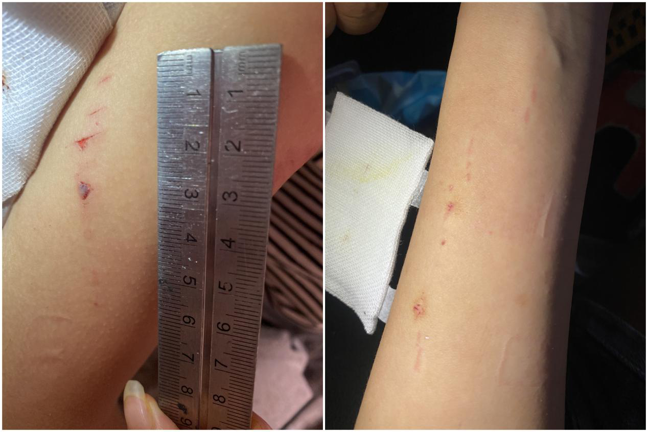 劉女士向中國質(zhì)量新聞網(wǎng)出示了診斷證明書及傷情圖片,并對事件過程進(jìn)行了詳細(xì)描述。7月17日下午四時許,陳小姐剛洗完澡,“爆炸毫無征兆”,就在她推開浴室玻璃門的那個瞬間發(fā)生了——“我聽到一聲巨響和孩子的尖叫聲,連忙沖進(jìn)了浴室,只見滿地的玻璃碎片和渣子,孩子腦門上、肩膀上、胳膊上、腿上、后背上、手上、腳上,到處流著血,有的碎片直接深深扎進(jìn)了肉里……看得我眼淚直接就掉下來了!”陳小姐當(dāng)時渾身疼痛難耐,頭暈?zāi)垦#瑒⑴康妊杆賹⑺椭粮浇牧监l(xiāng)醫(yī)院。醫(yī)生為其拔除碎玻璃殘留物,進(jìn)行緊急清創(chuàng)與包扎,并注射了破傷風(fēng)針。據(jù)陳小姐事后回憶,玻璃門爆裂時,有很大一片碎玻璃“飛”到了自己頭上,直接就把她砸懵了。而CT結(jié)果及醫(yī)生診斷也顯示,陳小姐因頭部被砸導(dǎo)致發(fā)生“頭外傷神經(jīng)反應(yīng)”,也就是俗稱的腦震蕩?!拔覀償?shù)了一下,孩子身上的傷有20多處,好幾條傷口長度都接近3厘米,那種情況下,眼睛沒事就真是不幸中的萬幸了!”