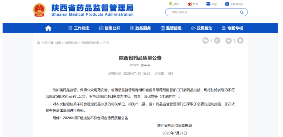 2019年7月22日,山東省藥品監(jiān)督管理局網(wǎng)站發(fā)布的藥品質(zhì)量抽檢通告顯示,標(biāo)稱金芙蓉公司生產(chǎn)的醋沒藥(批號(hào):170701)被檢出檢查-酸不溶性灰分項(xiàng)目不合格。