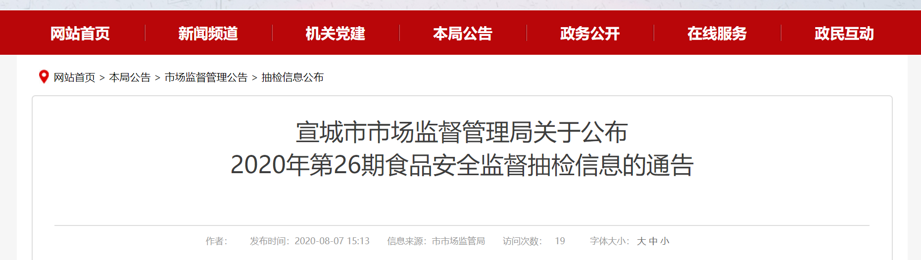中國質(zhì)量新聞網(wǎng)訊 8月7日,安徽省宣城市市場監(jiān)督管理局公布2020年第26期食品安全監(jiān)督抽檢信息。近期,宣城市市場監(jiān)督管理局組織抽檢3類食品31批次樣品。