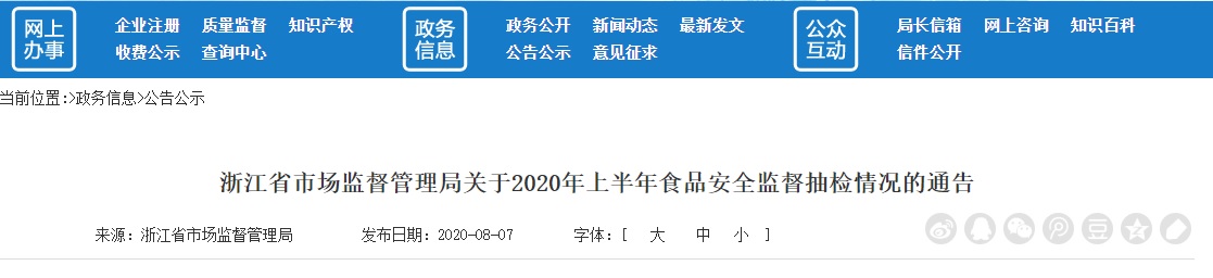2020年浙江省食品安全監(jiān)督抽檢結(jié)果匯總表(上半年)