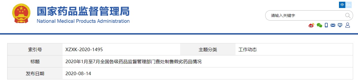 中國質(zhì)量新聞網(wǎng)訊 國家藥品監(jiān)督管理局網(wǎng)站2020年8月14日發(fā)布的消息顯示,2020年1月至7月,全國共查處生產(chǎn)銷售和使用假劣藥案件3023件,貨值金額2760.3萬元,罰款4821.9萬元,吊銷許可證22件,移送司法機關(guān)61件。案件涉及原料藥、化學藥品等各類藥品。