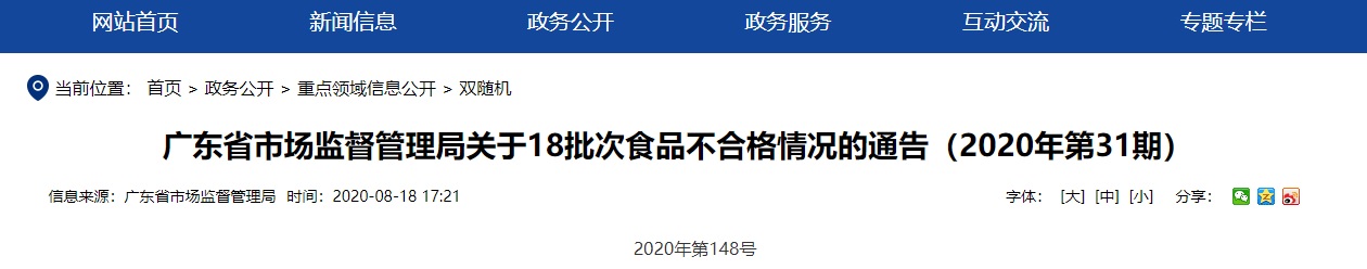 廣東省市場監(jiān)督管理局表示,已要求轄區(qū)市場監(jiān)管部門及時對不合格食品及其生產(chǎn)經(jīng)營者進行調查處理,責令企業(yè)查清產(chǎn)品流向,采取下架、召回不合格產(chǎn)品等措施控制風險,并分析原因進行整改。同時要求轄區(qū)市場監(jiān)管部門將相關情況記入生產(chǎn)經(jīng)營者食品安全信用檔案,并按規(guī)定在監(jiān)管部門網(wǎng)站上公開相關信息。
