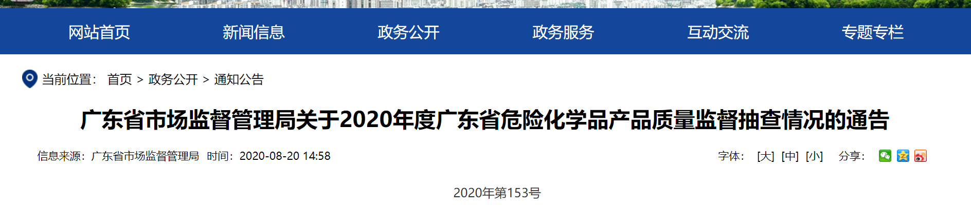 中國質量新聞網訊 (記者 徐遠官) 8月20日,廣東省市場監(jiān)督管理局官網發(fā)布2020年度廣東省危險化學品產品質量監(jiān)督抽查情況。根據《中華人民共和國產品質量法》《產品質量監(jiān)督抽查管理暫行辦法》《廣東省產品質量監(jiān)督條例》等相關規(guī)定,廣東省市場監(jiān)督管理局開展了廣東省危險化學品產品質量監(jiān)督抽查,抽檢任務由佛山市質量計量監(jiān)督檢測中心承擔。